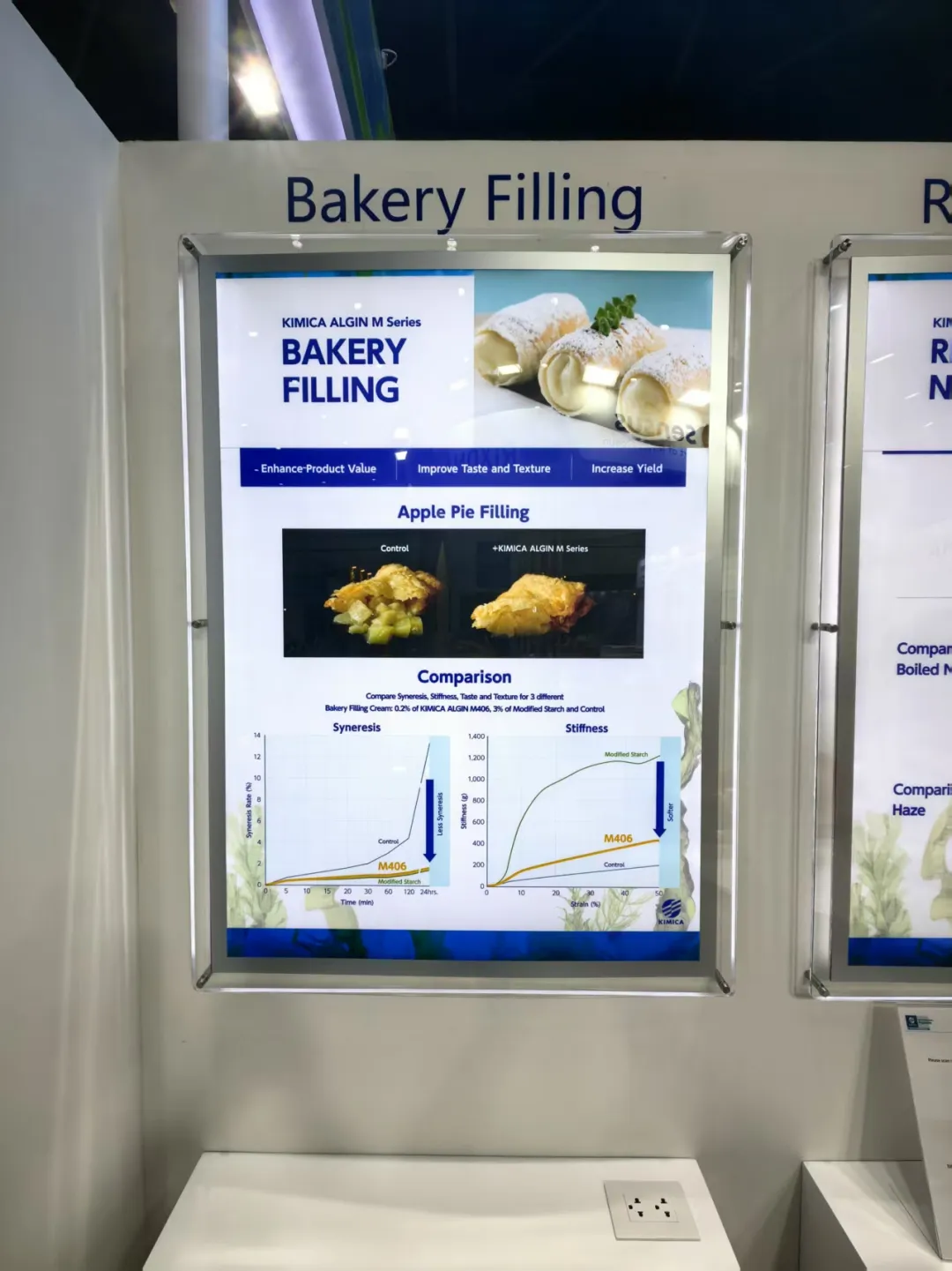 针对本次展会,我们结合KIMICA的品牌调性与东南亚市场需求,打造了兼具“科技感与自然美学”的定制化展位。展位设计以模块化展具搭建灵活展示空间,重点突出KIMICA的天然配料产品线;同时融入数字化互动屏,实时呈现产品应用案例与合规认证信息,助力买家快速获取关键数据。