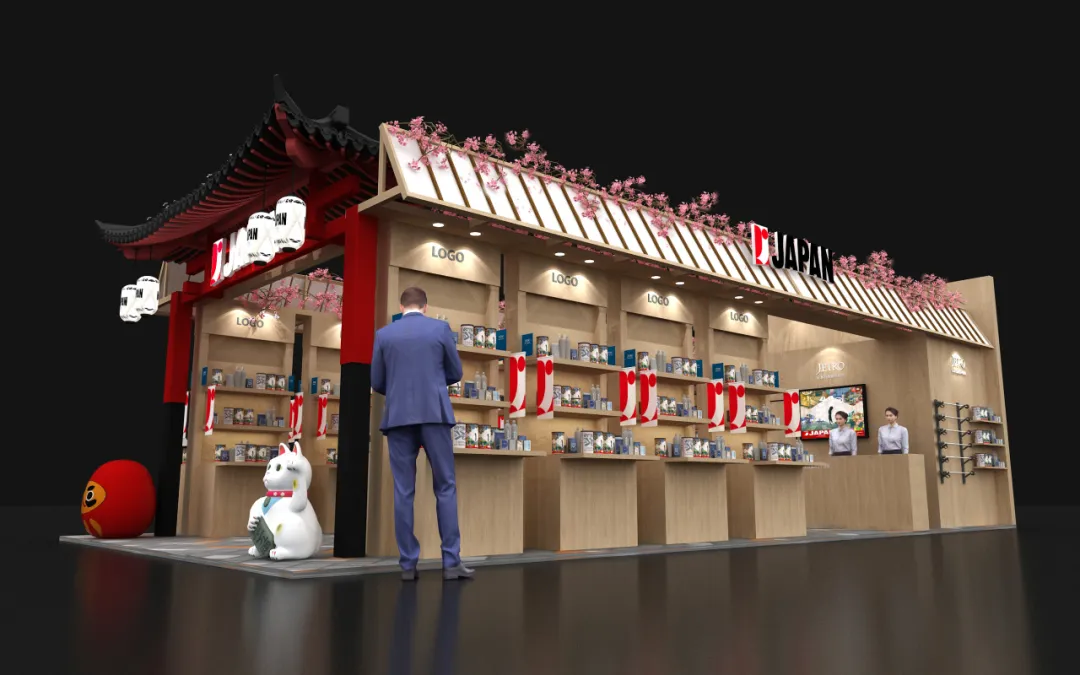 以日式商店街为设计理念,旨在营造一种热闹的氛围,仿佛置身于日本的商业街,与本次礼品展的主题融为一体。中央过道打造一个参观者可以在企业展台了解产品信息的场所, 创造方便流通的空间。