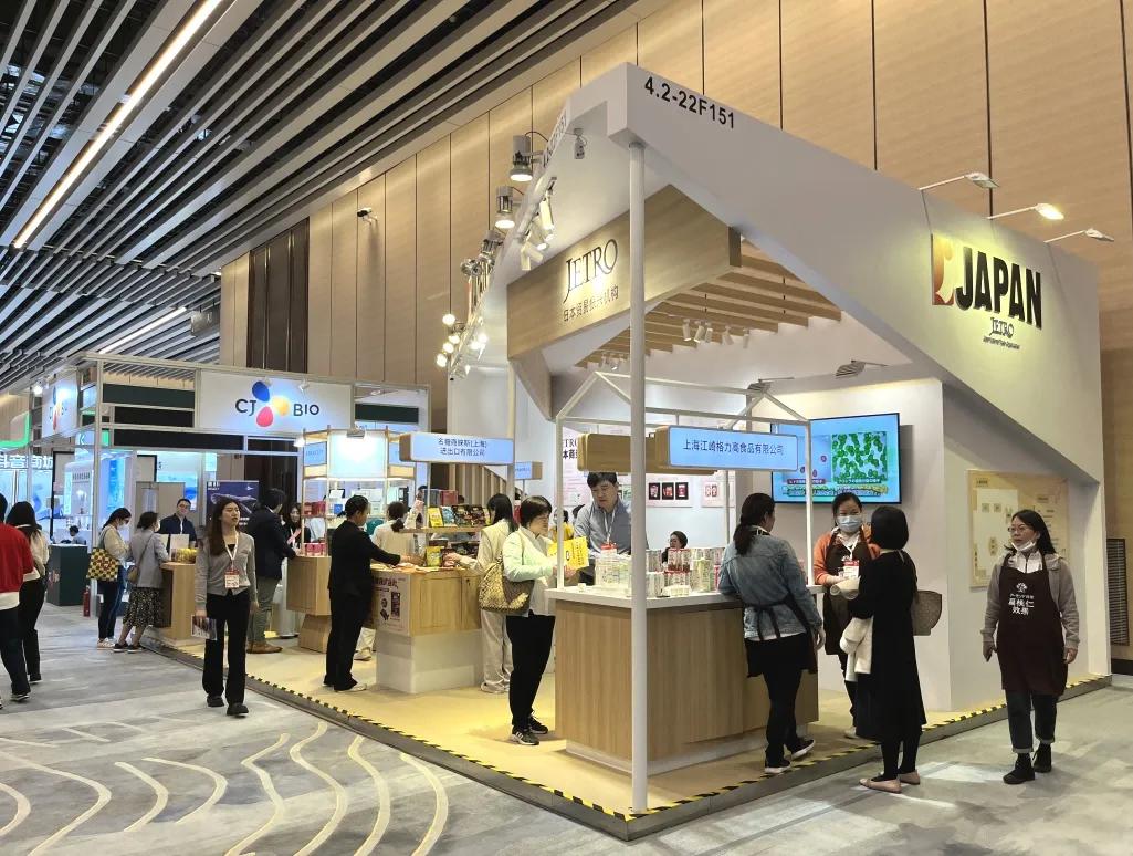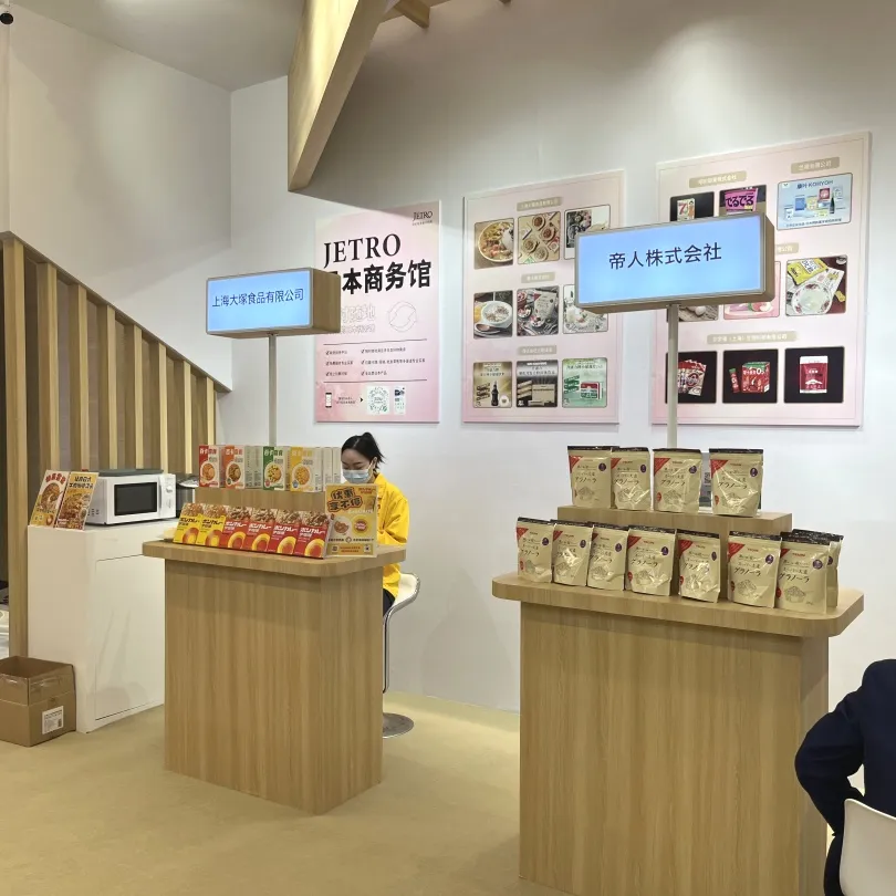 展台以日系精品超市风格为设计主题。追求简洁明快的布局,以直线和简单的几何形状为主导,使空间显得宽敞、通透,展现出低调而高质感的氛围。