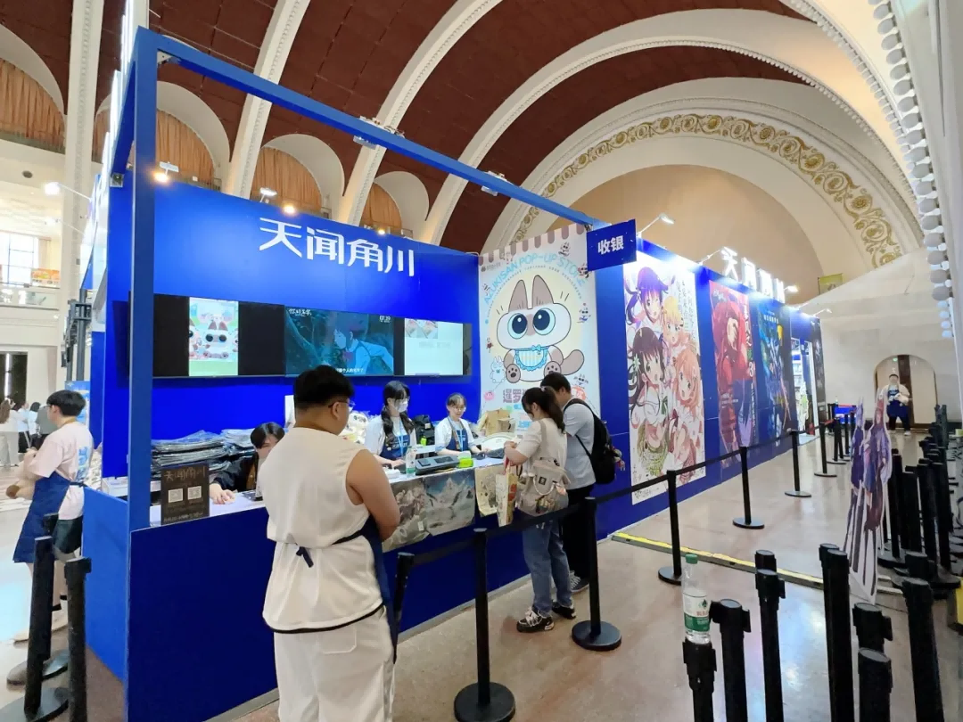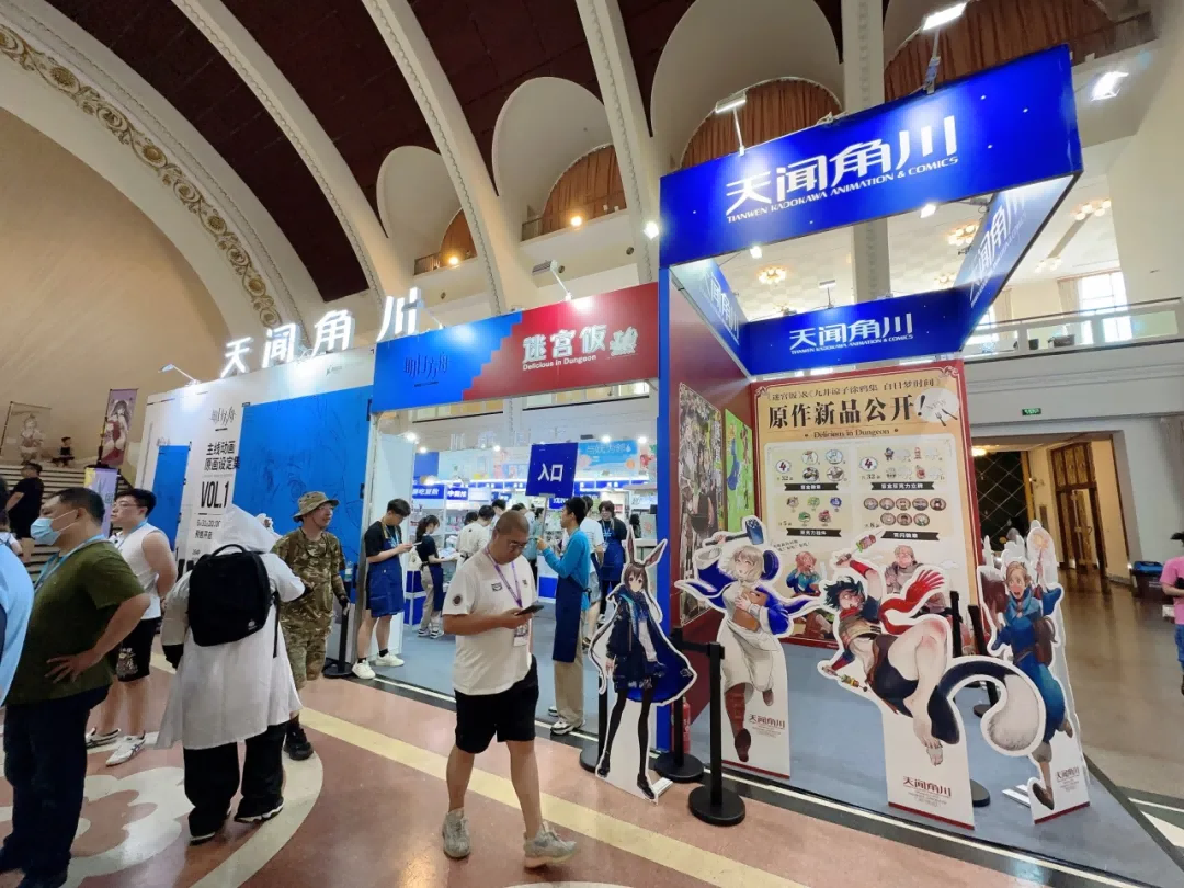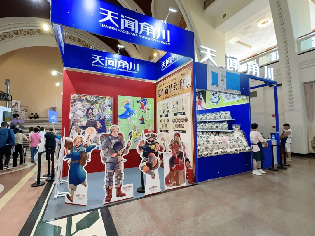 天闻角川展台,特设热门IP《迷宫饭》主题互动区域,吸引粉丝拍照打卡,让观众与喜爱的作品与角色进行“近距离接触”。规划专门的区域展示和销售动漫周边产品,如漫画、周边等。设计独特的货架和展示台,突出商品的特色。