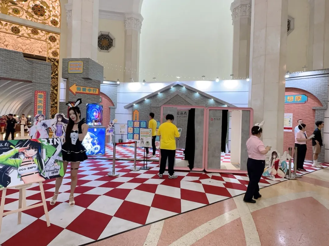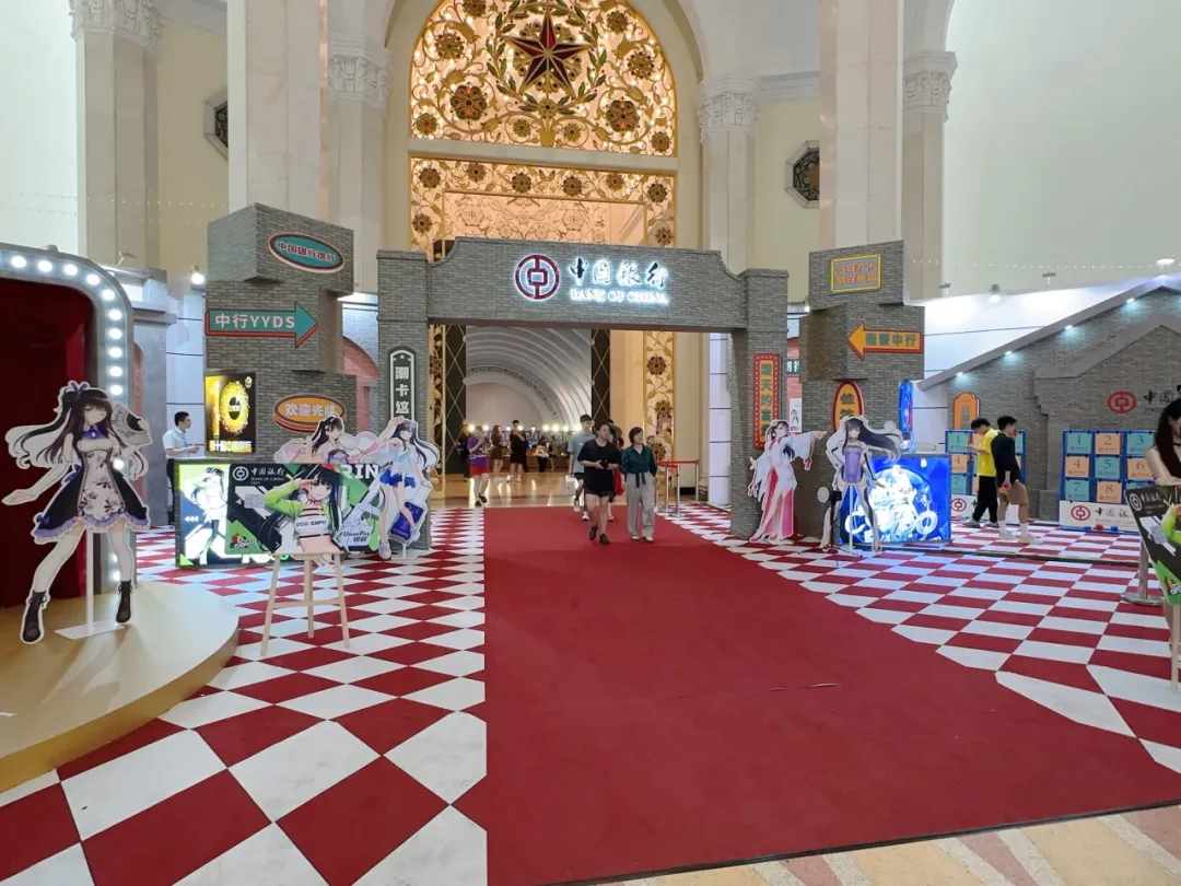 CCG EXPO 2024(第十九届中国国际动漫游戏博览会)于24年7月4日 - 7日在上海展览中心召开,作为老牌大型动漫展会和暑假热门活动,历来有大量海内外ACG知名企业参展,吸引众多年轻ACG爱好者。我司负责天闻角川、中国银行、百家合的展台设计与搭建。天闻角川展台设《迷宫饭》主题互动区,规划周边展示销售区;中国银行展台采用老上海复古主题,用红色强调,贴老上海海报营造氛围;百家合展台直线排列,依次划分展示、体验和咨询区,体验区有多台直线排列电脑供玩家试玩游戏。