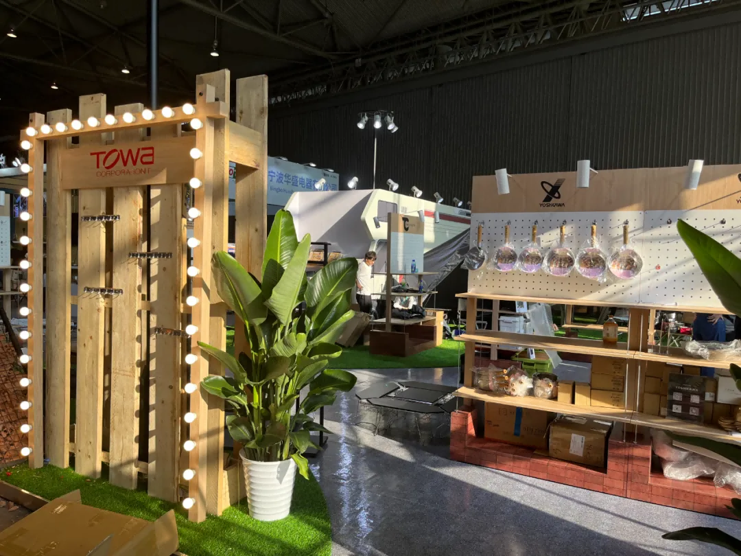 展台设计与自然元素紧密融合,营造出沉浸式户外露营氛围。运用大量木材、石材等天然材料,打造出质朴、原生态的感觉。使用原木搭建展台框架,用鹅卵石铺设地面局部,仿真草地、绿植,让人仿佛置身于真正的户外环境。
